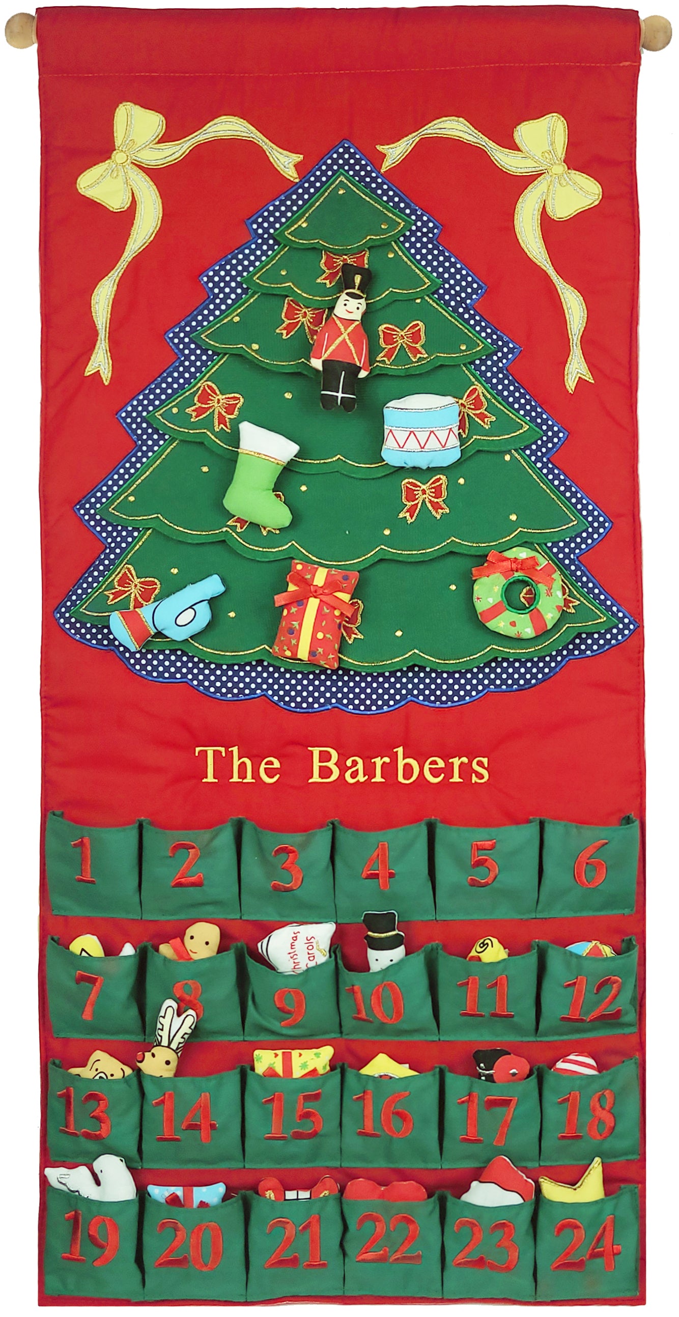 Fabric Christmas Tree Advent Calendar With “Family Name” โ Pockets
