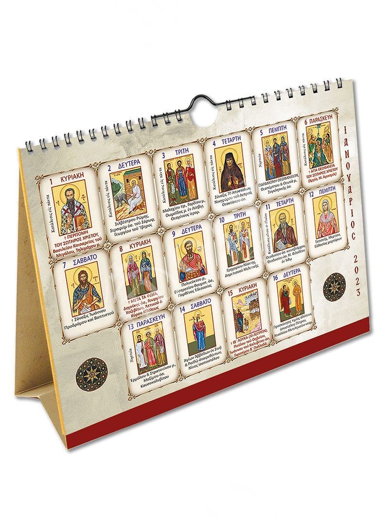2023 15 day Table & Wall Calendar Jesus Christ, Orthodox Greek