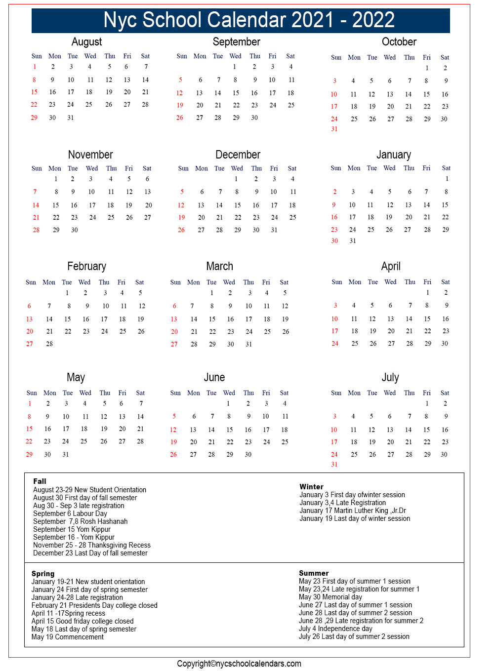 Printable NYC School Calendar for 2023 2025 is here!